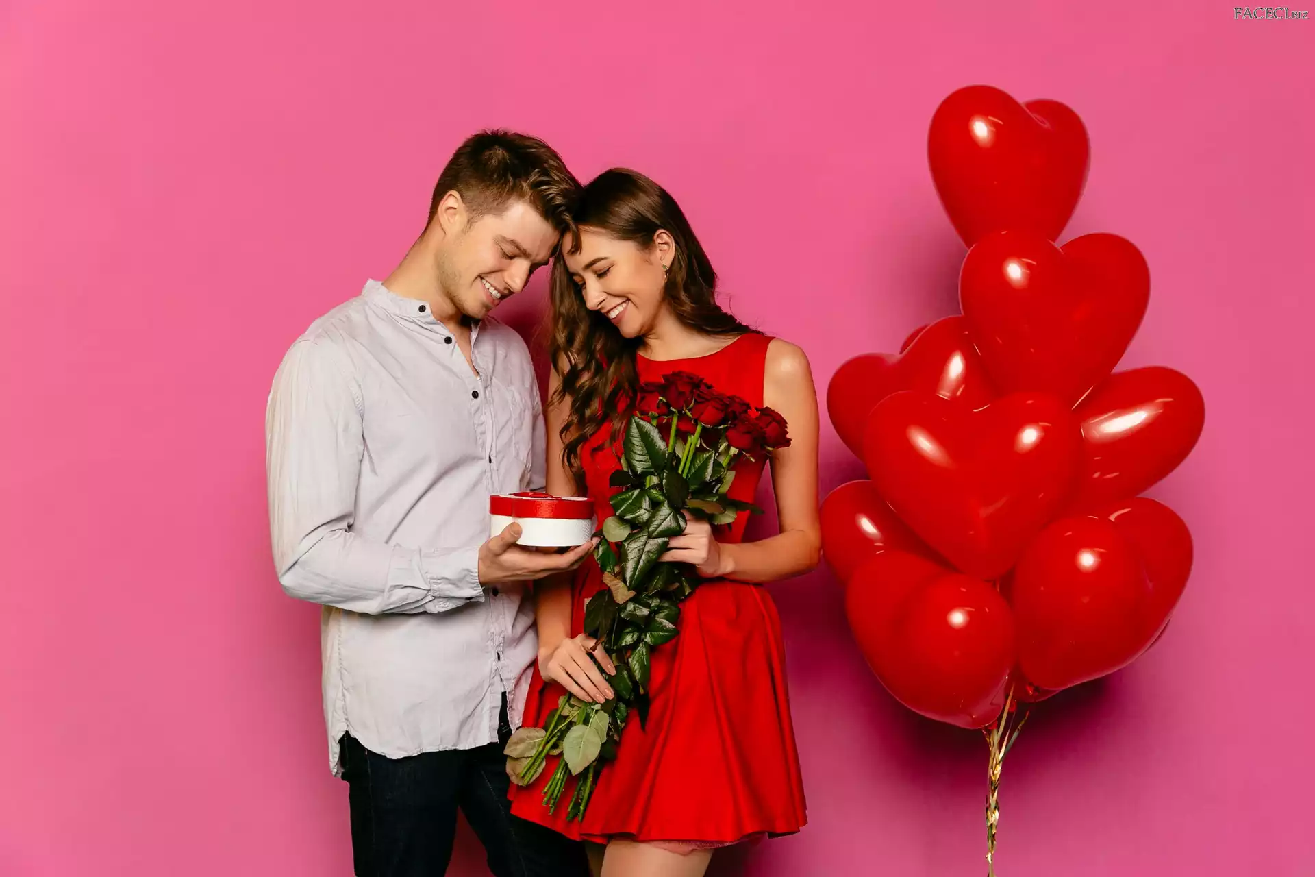 Walentynki, Bukiet, Mężczyzna, Balony, Czerwone, Prezent, Kobieta, Róż - faceci.biz