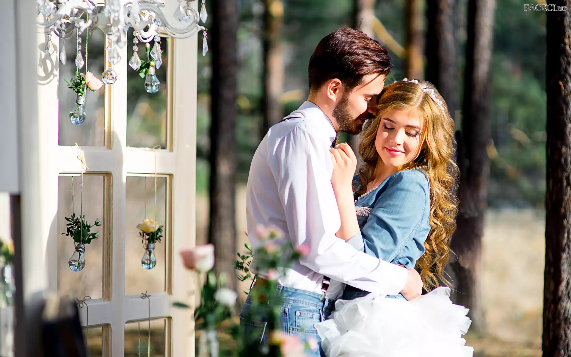 Przytuleni, Kobieta, Drzewa, Drzwi, Mężczyzna, Zakochani - faceci.biz